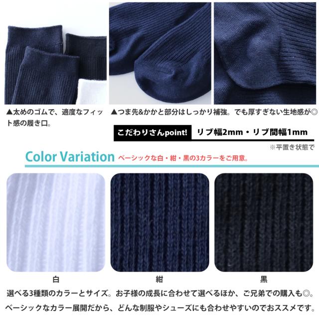 ●新学期の準備は済みましたか?AG加工で消臭・抗菌!シンプルなリブタイプのスクールソックスクルー丈タイプ。洗い替えにもうれしい、お得なセットで登場です★ ●中高生に人気の、くるぶし上の長さのハーフ(ミドル)丈。 冠婚葬祭などのフォーマルなシーンや、スポーツ時にも大活躍★ ●リブの太さは約2mm、細いリブタイプのソックスです。 ●シンプルデザイン・定番カラーだからどんな制服にもぴったり!もちろん普段着にもおススメです♪ お子様の成長に合わせて、またご兄弟・姉妹でお揃いで履いていただけるよう、3サイズ展開でご用意しました! ●履き口ゴム幅は約2.5cm。適度な太さと締め感で、足に心地よくフィットします。 |