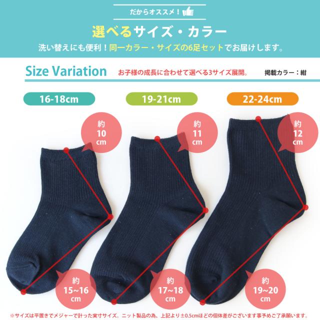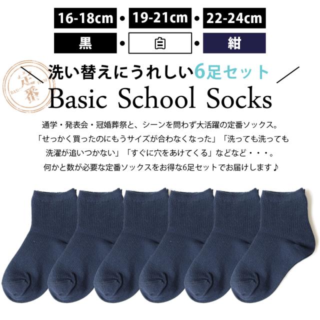 スクール ハーフ ミドル丈 靴下 キッズ 男児 女児 AG加工で消臭 抗菌 汗をかいても臭いにくい!シンプルベーシックなリブソックス 6足セット 黒 白 紺 【16-18cm 19-21cm 22-24cm 対応】通園 通学 幼稚園 保育園 発表会 フォーマル 冠婚葬祭 制服【送料無料】