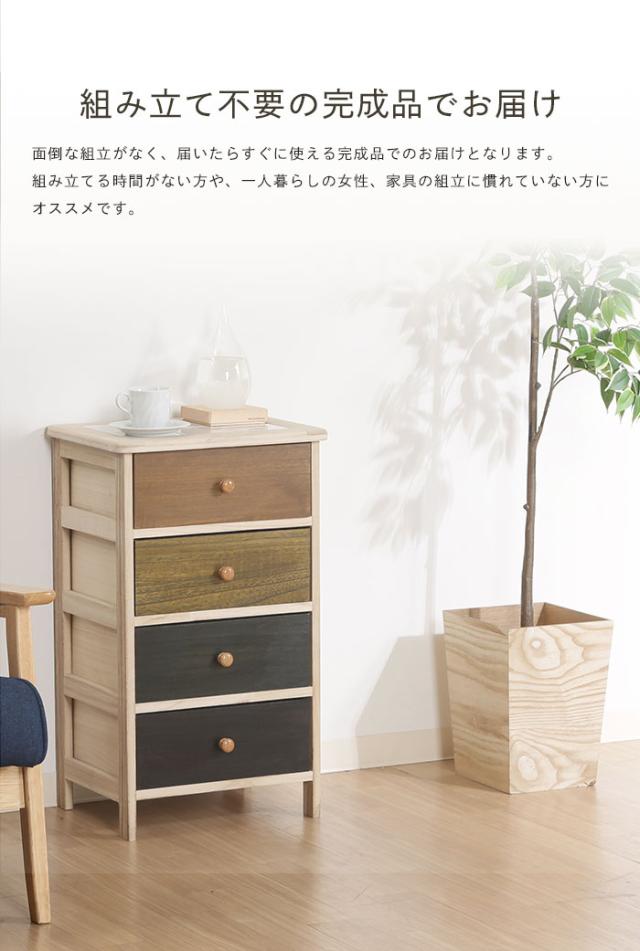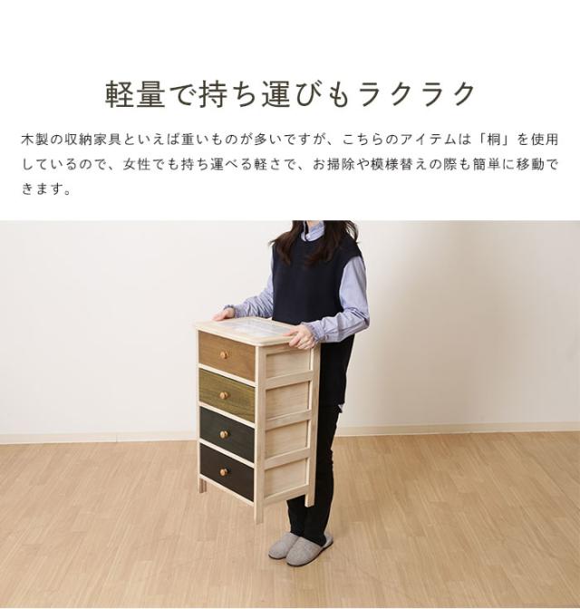 チェスト 4段 木製 完成品 脚付き ウッドチェスト 幅40cm カラフル グラデーション スリム 桐 収納家具 天板タイル キッチン リビング 収納 天然木 ナチュラル カントリー 北欧 おしゃれ リビングボード サイドボード 新生活 一人暮らし