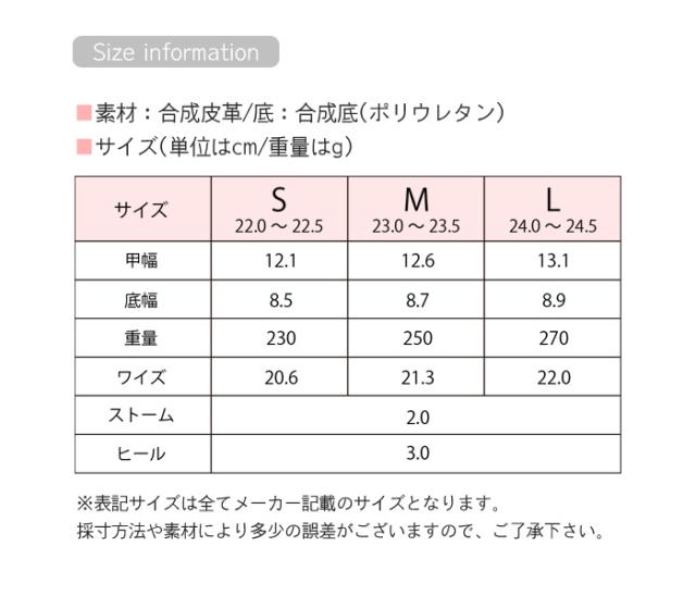 | リゲッタの働く女性に向けたお仕事シューズ 痛くない、疲れにくい、歩きやすい… と思ってもらえる、そんなフットウェアを目指してつくられています。 グミのような「やわらかソール」が土踏まずにぴったりフィット! 長時間履いても疲れにくい。 反りあがった形状で蹴り出しがラクな『ローリングカット』を施したインソール。 つまずき予防になり、着地から蹴り出しまで正しい体重移動をサポートします。 つま先は面テープ、甲はベルトで調整ができるので、甲高・幅広の方も足にフィットして楽に履けます。 ■サイズ S(22.0〜22.5cm) M(23.0〜23.5cm) L(24.0〜24.5cm) 実寸サイズの詳細につきましては画像をご確認ください。 ■素材:合成皮革/底:合成底(ポリウレタン) ■生産地:日本 <注意事項> ※表記サイズは全てメーカー記載のサイズとなります。 採寸方法や素材により多少の誤差がございますので、ご了承下さい。 ※お客様のご覧になられますパソコン機器及びモニタなどの違いにより、実際の商品素材の色と相違する場合もありますのでご了承下さい。 |