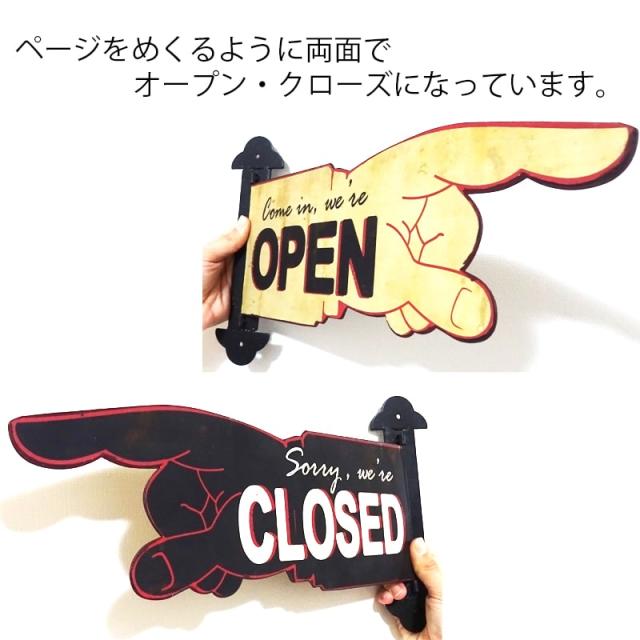 ユニークな指差しデザインの"OPEN&CLOSED"のハンドサイン プラッケです。
