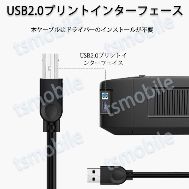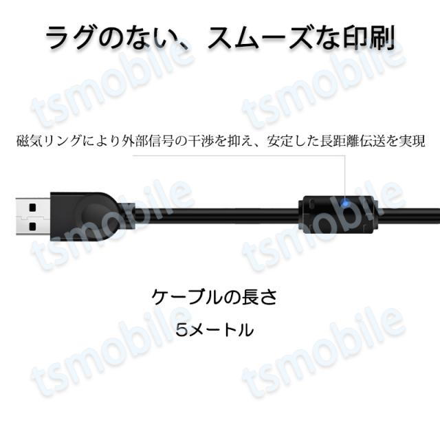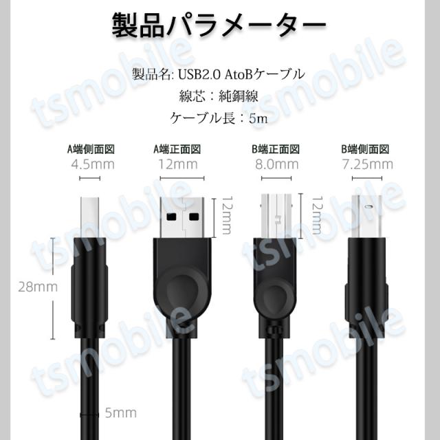プリンター用USB-AtoBケーブル 5m USB2.0 コード5メートル USBAオスtoメUSBBオス データ転送 パソコン スキャナー 複合機 有線接続 コネクタ キャノン 黒色