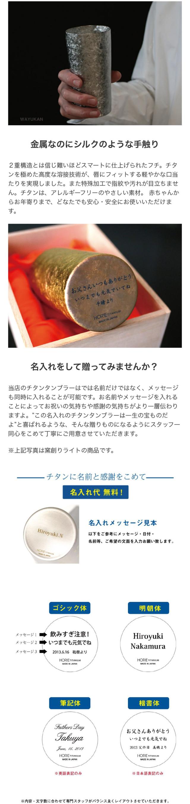 【チタンタンブラー 名入れ無料!】窯創り 純チタン製二重タンブラー プレミアム ギフト ビールグラス ホリエ おしゃれ 高級感 チタンギフト 父の日プレゼント 男性 名入れ 誕生日プレゼント お餞別 退職祝 敬老の日 記念品 送料無料 伝統工芸・ 陶器の和遊感