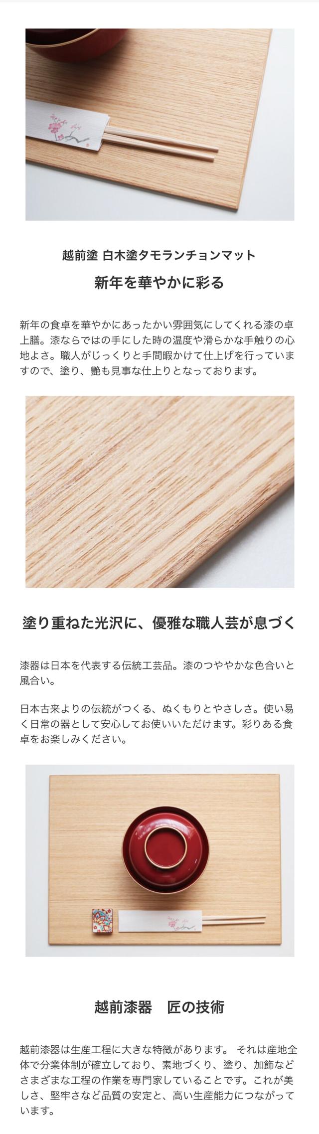 越前塗 白木塗タモ15.0ランチョンマット 日本製 シンプル モダン 迎春 お正月お膳 漆器 職人 送料無料【伝統工芸・ 陶器の和遊感】