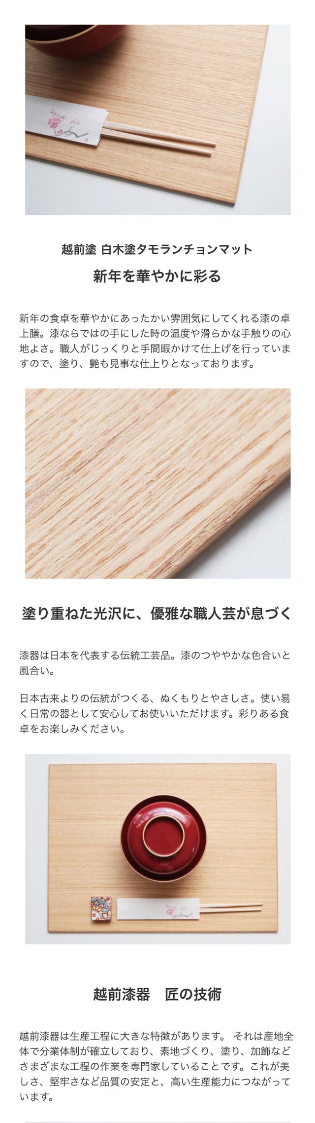 越前塗 白木塗タモ13.0ランチョンマット 日本製 シンプル モダン 迎春 お正月お膳 漆器 職人 送料無料【伝統工芸・ 陶器の和遊感】