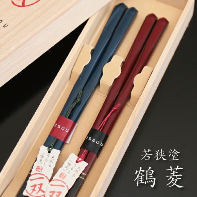 若狭塗 鶴菱 ペア箸 木箱入 ギフト 一双 母の日 父の日 敬老の日 結婚祝 夫婦箸 還暦祝 長寿祝 誕生日プレゼント 送料無料 メッセージカード・ラッピング対応可能【伝統工芸・ 陶器の和遊感】