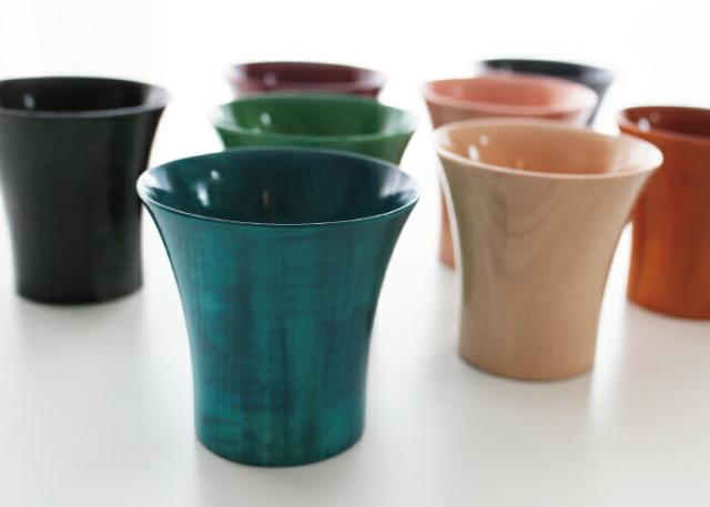 シルエットが美しいクールカップは、大きな口径となめらかな口あたりが特長。 国産の栃の木を山中の木地師が轆轤挽きにてColorfulな色合いに塗り上げました。 木の器は保冷性・保温性に優れているため、氷をたっぷりいれても溶けにくく、お酒はもちろんお茶やジュースも美味しくお召し上がりいただけます。