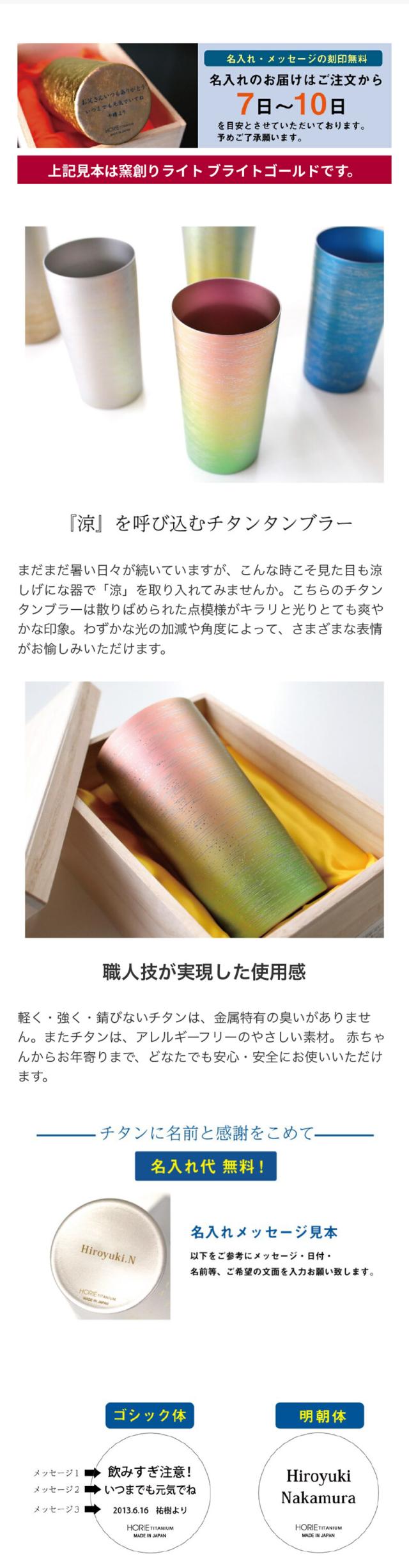 【チタンタンブラー 名入れ無料!】涼 大 純チタン製二重タンブラー 父の日 ギフト ビールグラス ホリエ 燕三条HORIE 誕生日プレゼント お餞別 退職祝 敬老の日 チタン 送料無料【名入れ無料】伝統工芸・ 陶器の和遊感