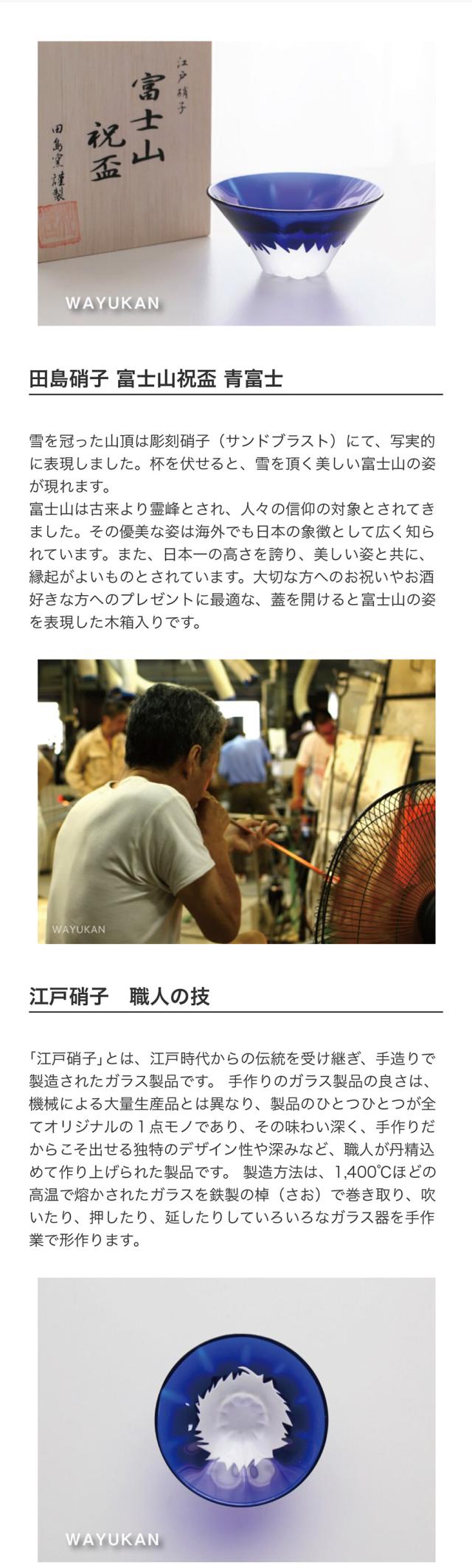 田島硝子 富士山祝盃 青富士 父の日 敬老の日 結婚祝 退職祝 お餞別 誕生日 プレゼント ギフト 伝統工芸・陶器の和遊感
