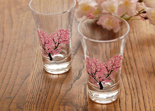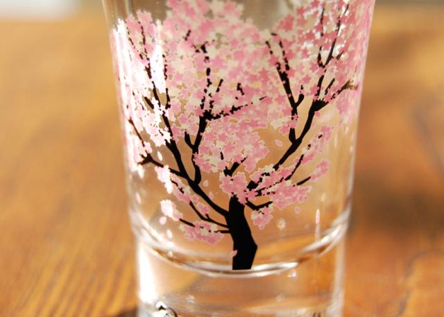 特殊なインクを使用して絵付けされたこちらのグラスは、17℃以下の飲み物を注ぐと、桜が満開に咲き誇ります♪