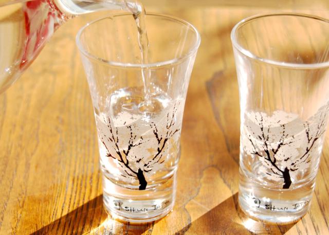 お酒を注ぐと桜が満開