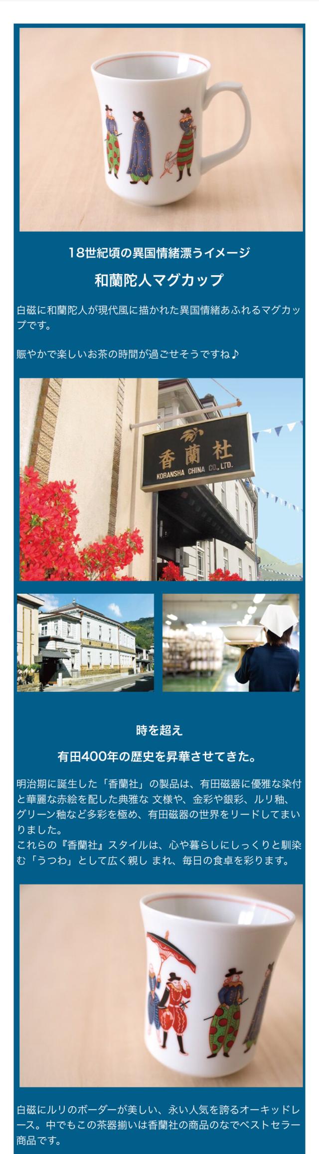 香蘭社 和蘭陀人マグカップ 有田焼 日本製 おしゃれ 内祝い 食器 結婚祝 還暦祝 記念品 母の日 敬老の日 【伝統工芸・ 陶器の和遊感】