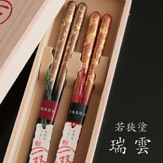 若狭塗 瑞雲 ペア箸 木箱入 ギフト 一双 母の日 父の日 敬老の日 結婚祝 夫婦箸 還暦祝 長寿祝 誕生日プレゼント【伝統工芸・ 陶器の和遊感】