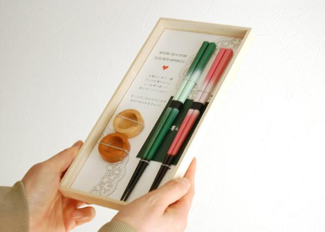 大切な門出やハレの日の御祝に、素材から徹底的にこだわったお箸の贈り物はいかがでしょうか。 メッセージ付きの桐箱に入ったペア箸は、販売当初から贈られた多くの方に御満足をいただいております。 毎日使うものだから、きっと思いが伝わります。