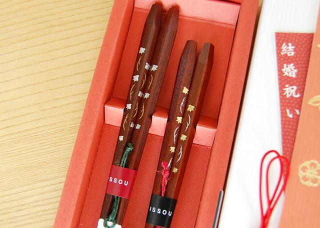 これからの物語への思いを絵柄に込めて、夫婦円満、家内安全を祈念した夫婦箸。
