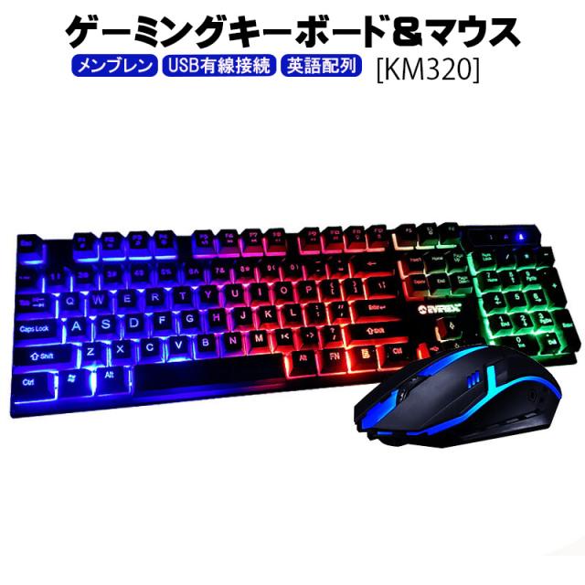 | ゲーミングキーボード マウス セット [KM320] USB有線ゲーミング キーボード ゲーミングマウス 英語配列 テンキー付き 光学式マウス |
