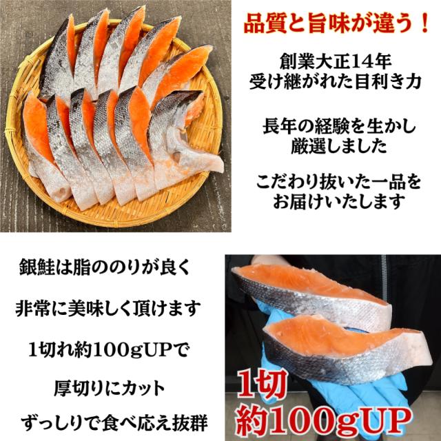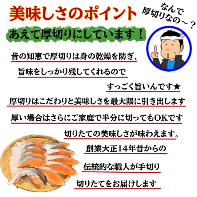 | みんな大好き、甘塩銀鮭片身。チリ産の脂がノッた銀鮭です。 甘塩銀鮭は今やスーパーや量販店の販売する塩鮭の中では、人気も高く、メイン的な商材として受け入れられております。 私の様な年寄り?(まだ、51歳(^^))は、本チャン紅鮭に拘っておりますが、若い方などは銀鮭の方が旨いって人も増えております。 銀鮭は脂ののりが良く、非常に美味しく頂け、商品にムラが御座いません。 今回は、家庭でも直ぐに食べて頂けるように切り身にした状態でお届けします。9〜10切れほどになります。 片身で約1.1kgありますので、タップリと食べられます。 オススメの食べ方 あえて厚切りにしています。昔の知恵で厚切りは身の乾燥を防ぎ、旨味をしっかり残すから超旨いんです。厚い場合はさらにご家庭で半分に切ってもOK!切りたての美味しさが味わえます。創業大正14年昔からの伝統的な職人手切りで切りたてをお届けします。昔ながらの厚切りはこだわりと美味しさを最大限にする意味もあります。美味しく食べる”コツ”は、シンプルに”じんわり”と焼いて頂き、召し上がって頂くのが一番だと思います。朝食のおともに、お弁当に、冷めても美味しくいただけます。鮭フレークも作れます。 |