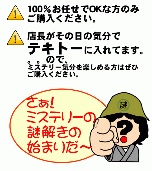 何が入るか、出荷当日まで決めてません 。分かりません!