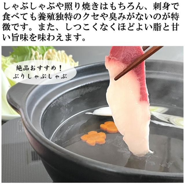 | 【店長より】 鮮魚につきご不在続きや受け取り拒否はご遠慮下さい。 約5kのピチピチのぶりをさばいてるので、半身で約1.3kUPあります! とろける食感です!まずは定番のお刺身でどうぞ!ぶりしゃぶもとてもおいしいです。生でもOKなので軽くしゃぶしゃぶと。 焼きもスーパーの物とは全然違います!身質が最高で!そのあとはブリ大根!私は、ぶり丼もしました!大満足です! 今年度は夏場の海水温が高かった為、稚魚の餌食いが悪く魚体の成長が遅れておりますが、 12月の発送時には魚体は約5k程には成長している見込みとなっております。 フィーレ1枚あたり約1.3kUPあたりになると思われます。 (魚体の成長具合で多少変わります。) 中央市場の約5kまわりの大きなぶりを半身真空に!半身にして出荷!生食OKの鮮度が自慢です!魚河岸目利きのいいものを厳選して半身処理します! *半身で出荷です。これ以上の解体は出荷量が多いのでできません。ご家庭でお好きなサイズに切ってください。ウロコ・骨はついています。ウロコは小さいので簡単にとれます(私は金属タワシでさっさと)。カマ付なのでうれしいです。 成長段階に合わせ、いくつもの名をもつことから「出世魚」と言われます。 70cm以上に成長したものは「ぶり」です。 同じように厳寒期においしい「かんぱち」「ひらまさ」もぶりの仲間なんです。 栄養価も高く、学習・記憶能力の向上や、動脈硬化・心筋梗塞・脳梗塞・糖尿病など生活習慣病の予防効果があるとされるEPA、DHAが豊富なんです。また抗酸化作用のあるビタミンEが豊富とにかく栄養満点! まずは刺身で⇒しゃぶしゃぶで⇒焼きで⇒煮物でとなんでもできるのが鰤のいいところ! |