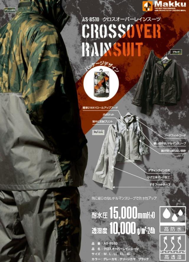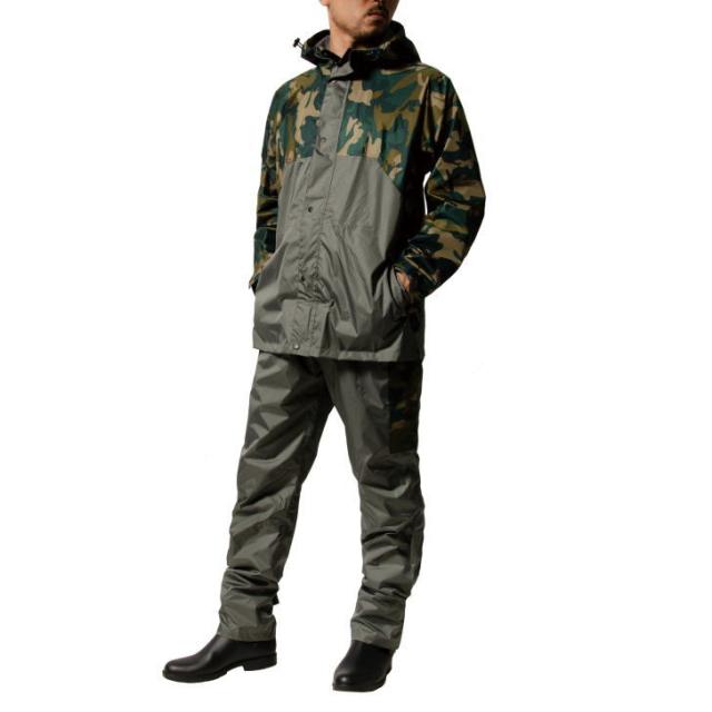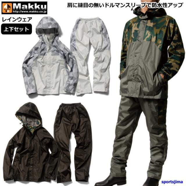 | ●MAKKU マック カモ柄 クロスオーバーレインスーツ メンズ 上下セット AS8510 | ||||||