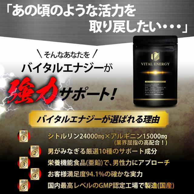 シトルリン アルギニン マカ 亜鉛 厳選10種 サプリメント 30日分 180タブレット バイタルエナジー