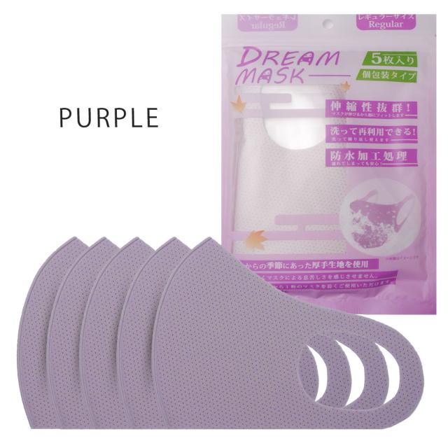 DREAM MASK 立体 マスク 5枚入り メッシュ 厚手生地 通気性良し 防水加工 5色 小顔効果 フェイスライン お洒落 フリーサイズ 男女兼用 花粉 パープル 黒 グレイ 紫 ピンク ベージュ 白