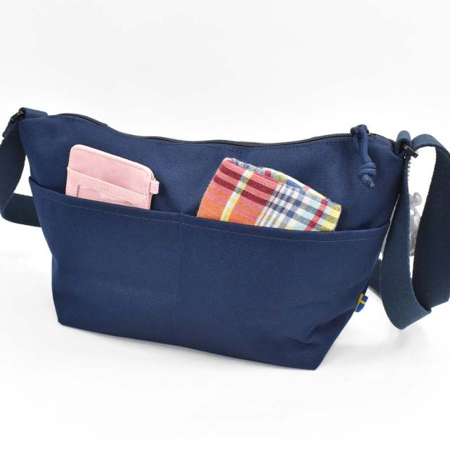 ちょっとしたお出かけや旅行にも便利なサイズ感。長財布や折り畳み傘などがしっかり入る大きさです。前面・背面にポケットを備え、内側にも小分けポケットを完備するなど、小物の整理もしやすいデザインです。