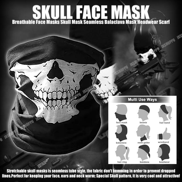 スカル フェイス マスク [ホワイト] 超薄手 ネックウォーマー ドクロ 骸骨 カバー フェイスマスク スノボ サバゲー ツーリング 送料無料 サバイバルゲーム アウトドア レジャー コスプレ 衣装 小物 ほね どくろ 顔 頭 顔面 幽霊 おばけ お化け ハロウィン ゲーム 怖い 化け物