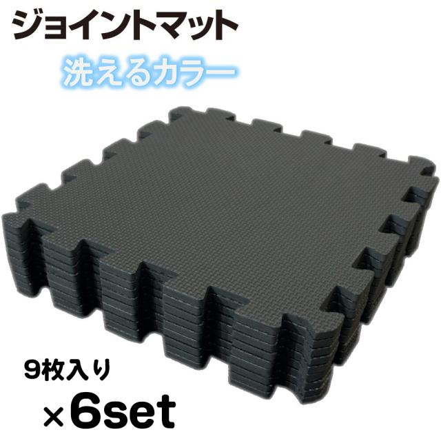 6セット:約3畳用(54枚)約192x288cmブラック色 洗えるEVAジョイントマット【1セット:9枚入(約32x32cm/1枚)】