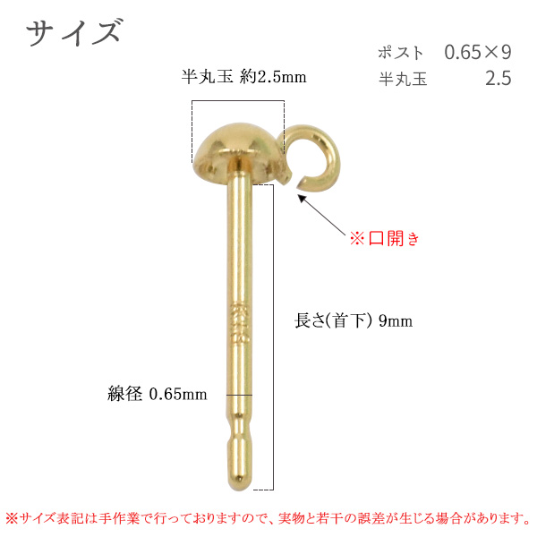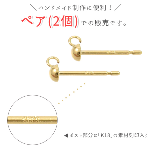 オリジナルアクセサリー作りに役立つ18金製のピアスポストです。