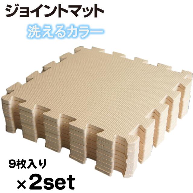 2セット:約1畳用(18枚)約96x192cmベージュ色 洗えるEVAジョイントマット【1セット:9枚入(約32x32cm/1枚)】