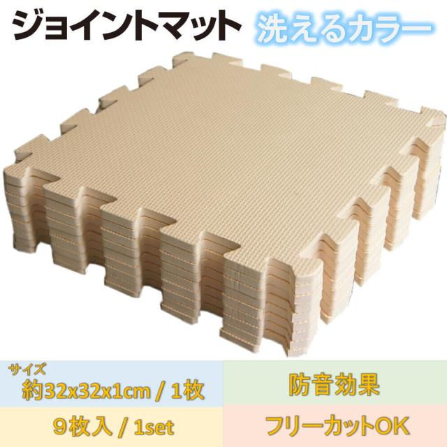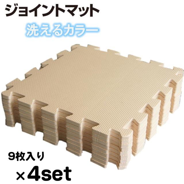 4セット:約2畳用(36枚)約192x192cm ベージュ色 洗えるEVAジョイントマット【1セット:9枚入(約32x32cm/1枚)】