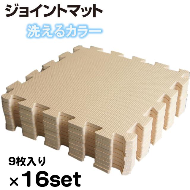 16セット:約8畳用(144枚)約384x384cm ベージュ色 洗えるEVAジョイントマット【1セット:9枚入(約32x32cm/1枚)】