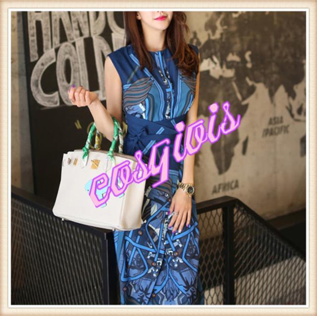 エレガント ワンピース スカーフ 柄 ドレス ワンピ ドレス ノースリーブ ミディ丈 ひざ丈 お呼ばれ お洒落 ラップワンピース 上品 披露宴 カジュアル パーティー フォーマルドレス