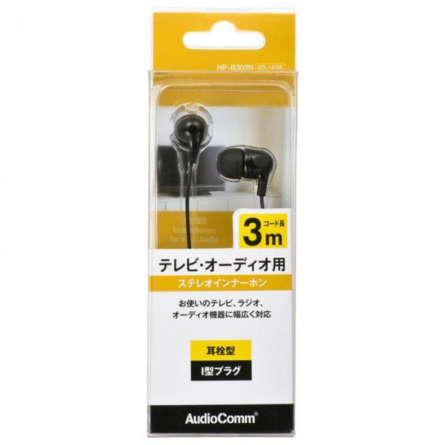 OHM AudioComm テレビ・オーディオ用ステレオイヤホン 耳栓型 3m HP-B302N |b03