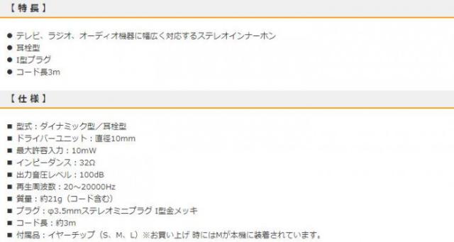 商品概要:テレビ・オーディオ用ステレオイヤホン