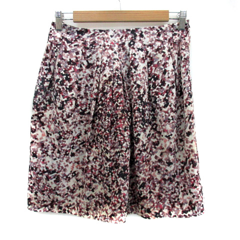 【中古】スピック&スパン ノーブル フレアスカート ギャザースカート ミニ丈 総柄 38 マルチカラー 紫 レディース