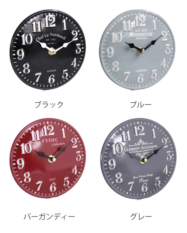 少しくすんだ落ち着いた色味は幅広いインテリアとマッチし、お部屋に馴染みます。カラーによって文字板のデザインが違うので、お好みに合わせてお選びください。ちょっとした贈り物にもピッタリなアイテムです。