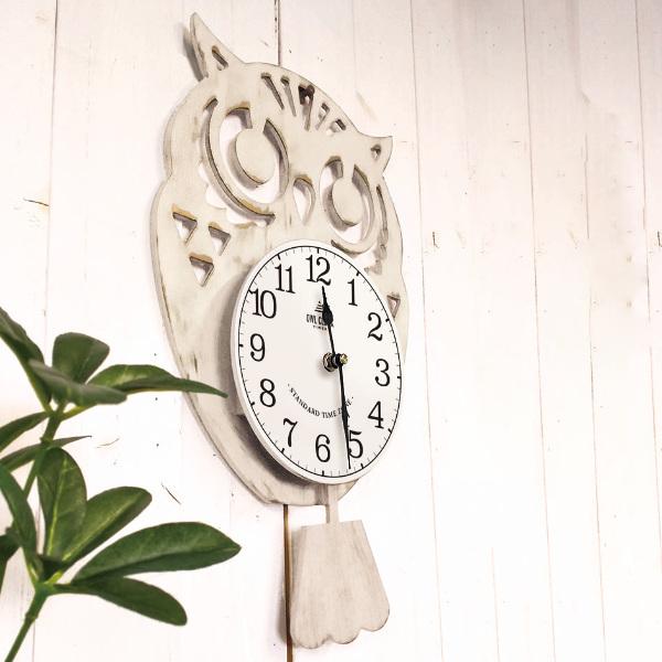 振り子時計 フクロウ 掛け時計 壁掛け 時計 アナログ 時計 壁掛け( 壁掛け時計 とけい ウォールクロック クロック 雑貨 ふくろう 動物 アニマル エイジング加工 軽量 リビング 居間 ダイニング 部屋 子ども部屋 インテリア )