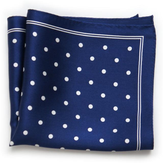 ◆ポケットチーフ メンズ 結婚式◆日本製◇濃紺×白/ドット プリント 枠付きポケットチーフ シルク100% メール便可 acc-DT01