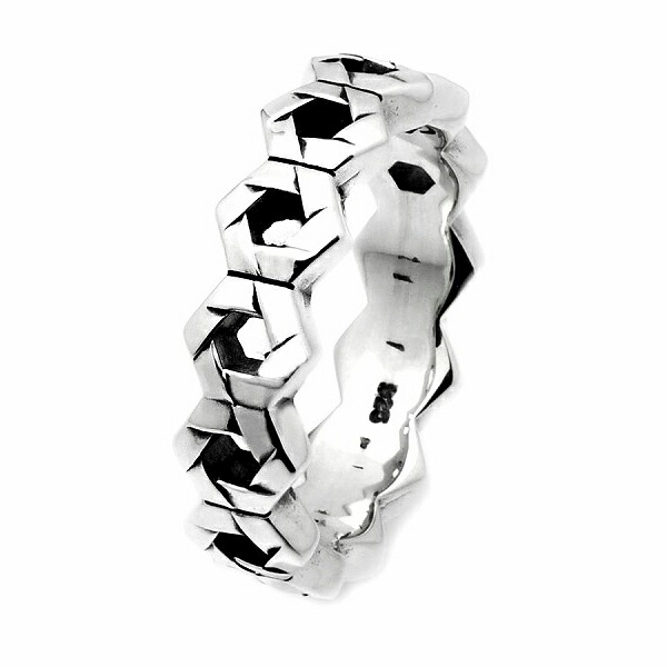 6角形の織り成すパーツで形成された幾何学的なイメージのリング。