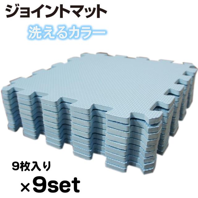 9セット:約4.5畳用(81枚)約288x288cm ブルー色 洗えるEVAジョイントマット【1セット:9枚入(約32x32cm/1枚)】