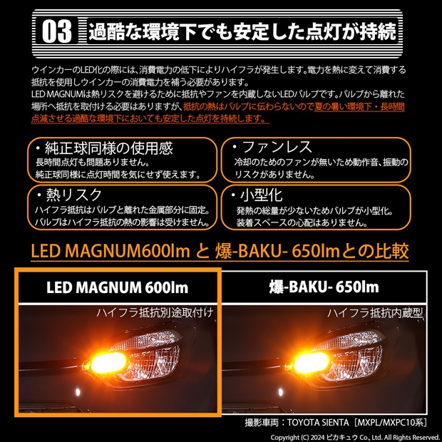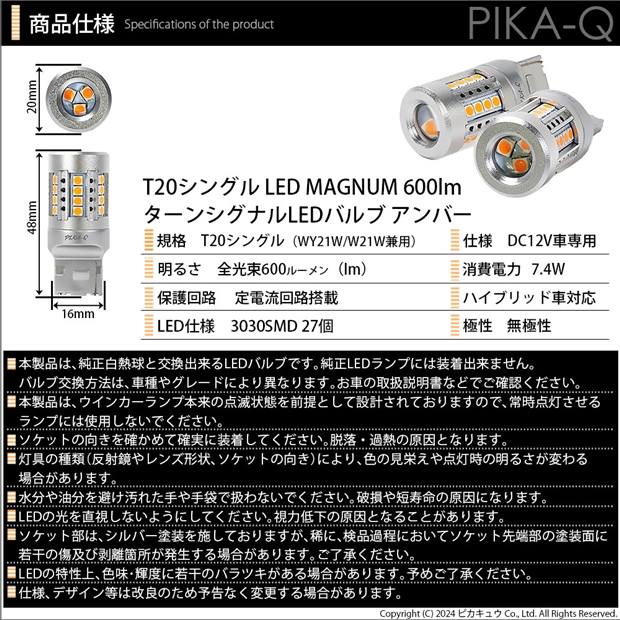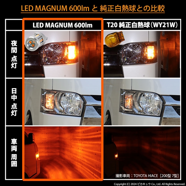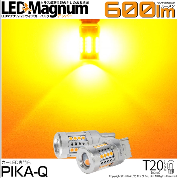ピカキュウ,LED専門店,LEDバルブ,T20,W21W,WY21W,ウインカー専用,驚異の明るさ600lm,LEDMAGNUM,マグナム,爆光ウインカー