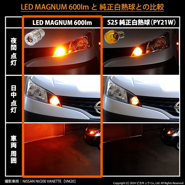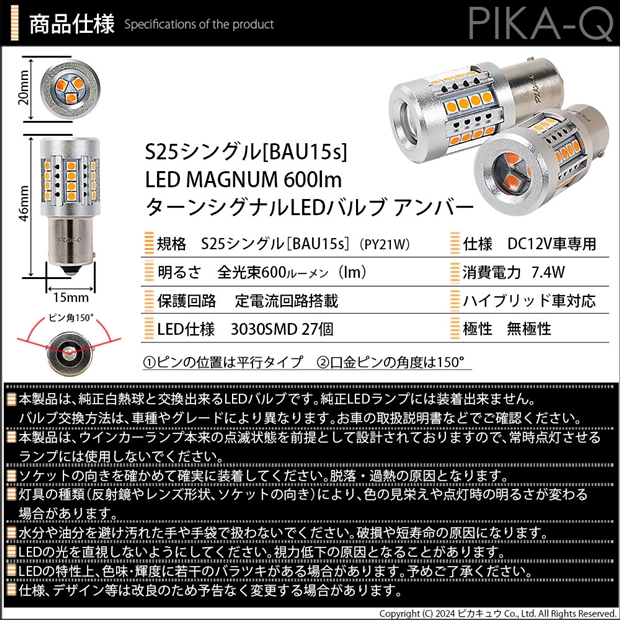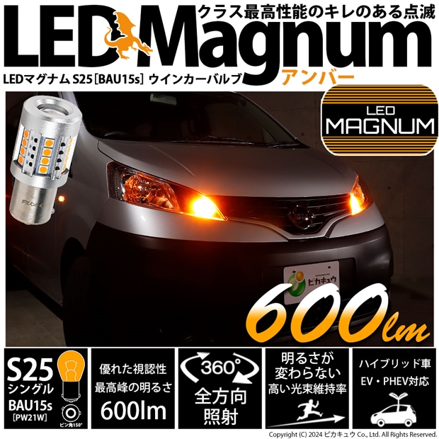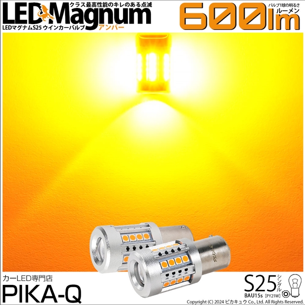 ピカキュウ,LED専門店,LEDバルブ,S25シングルピン角違い,ピン角150度,BAU15s,PY21W,ウインカー専用,驚異の明るさ600lm,LEDMUGNUM,マグナム,爆光ウインカー