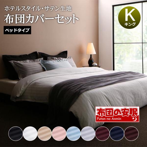 布団カバー 4点セット キング ベッドタイプ おしゃれ 掛け布団カバー ボックスシーツ 枕カバー50×70cm ホテルスタイル サテン織り ストライプ柄 布団カバーセット 送料無料