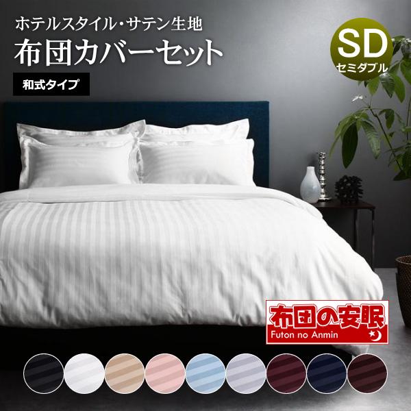 布団カバー 3点セット セミダブル 和タイプ おしゃれ 掛け布団カバー 敷布団カバー 枕カバー50×70cm ホテルスタイル サテン織り ストライプ柄 布団カバーセット 送料無料