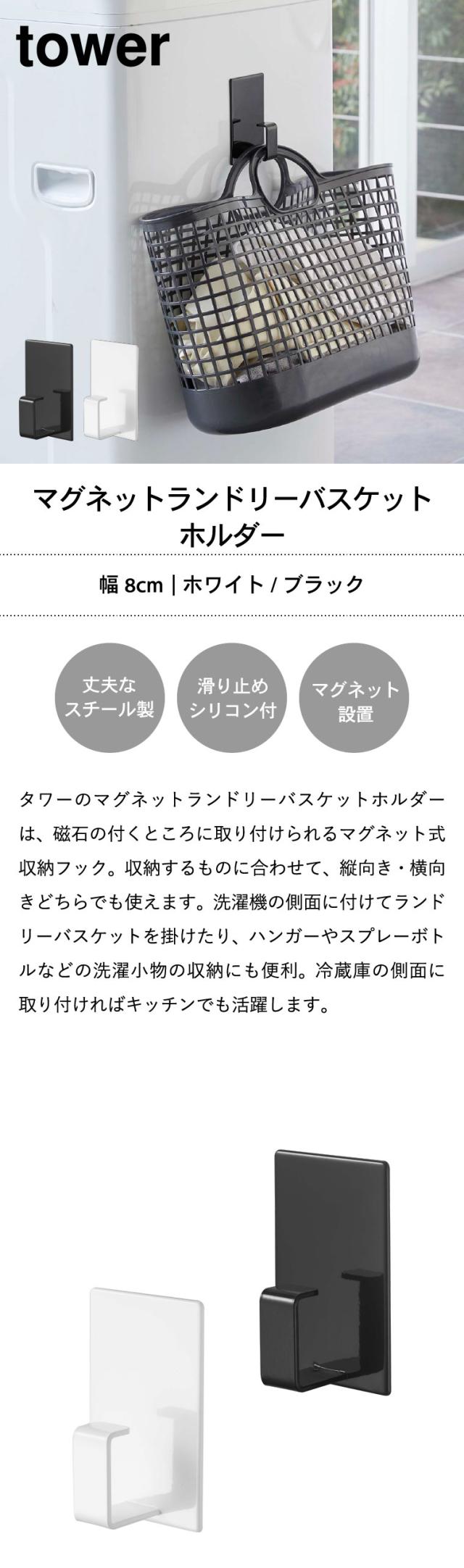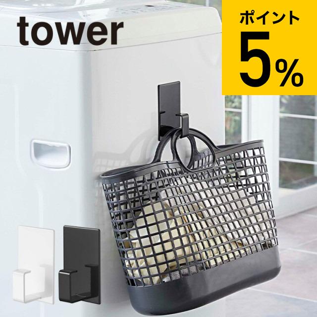 tower 山崎実業 タワー マグネットランドリーバスケットホルダー ホワイト ブラック 5417 5418 洗濯機横 フック ハンガーかけ 洗濯かご 誕生日プレゼント