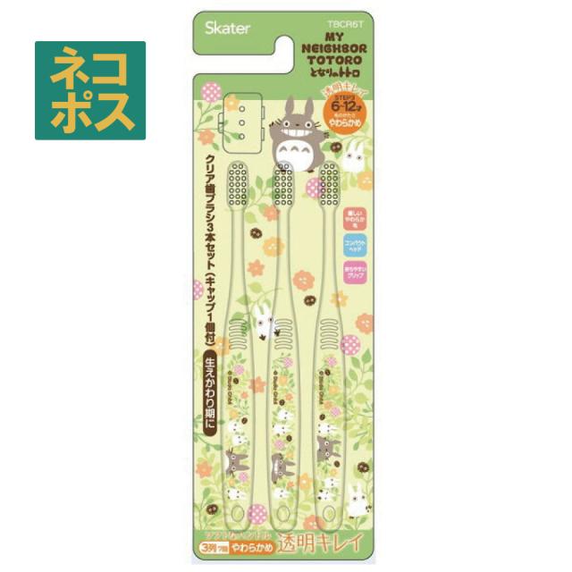 [小学生用]クリアこども歯ブラシ[3本入]●となりのトトロ プランツ●//はぶらし ハブラシ 歯ぶらし 虫歯予防 オーラルケア デンタルケア 子供用 はみがき コンパクトヘッド キャップ付き スタジオジブリ スケーター