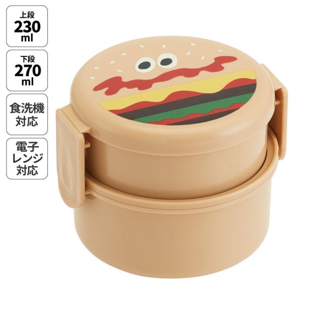 お弁当箱 二段 500ml レンジ対応 食洗機対応 丸型 かわいい キャラクター 子供 キッズ スケーター ONWR1【弁当箱 コンパクト ランチボックス 小学生 幼稚園 小さめ 幼児バーガーコンクス BURGER CONX 男の子 女の子】