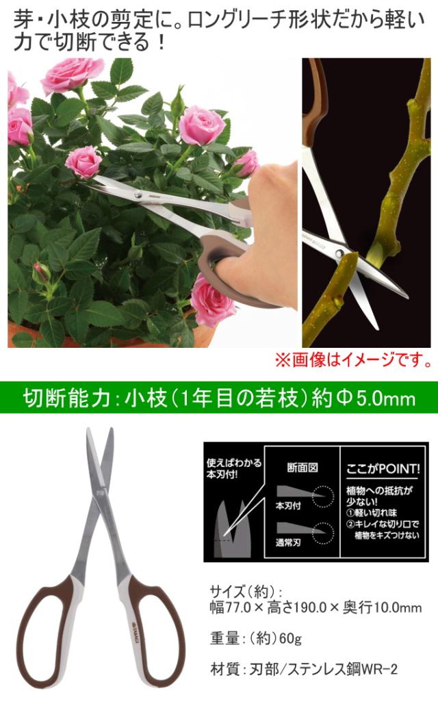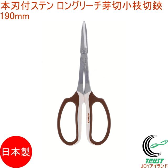 本刃付ステンレスロングリーチ芽切小枝切鋏 190mm 日本製 園芸 ガーデニング 丈夫 剪定はさみ 剪定 芽切 小枝 ステンレス
